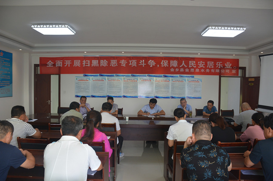 9月4日,金鄉(xiāng)縣金思泉水務有限公司開展“掃黑除惡、勇當先鋒”主題黨日活動。會議由黨委書記蘇文彬主持,全體黨員干部參加。