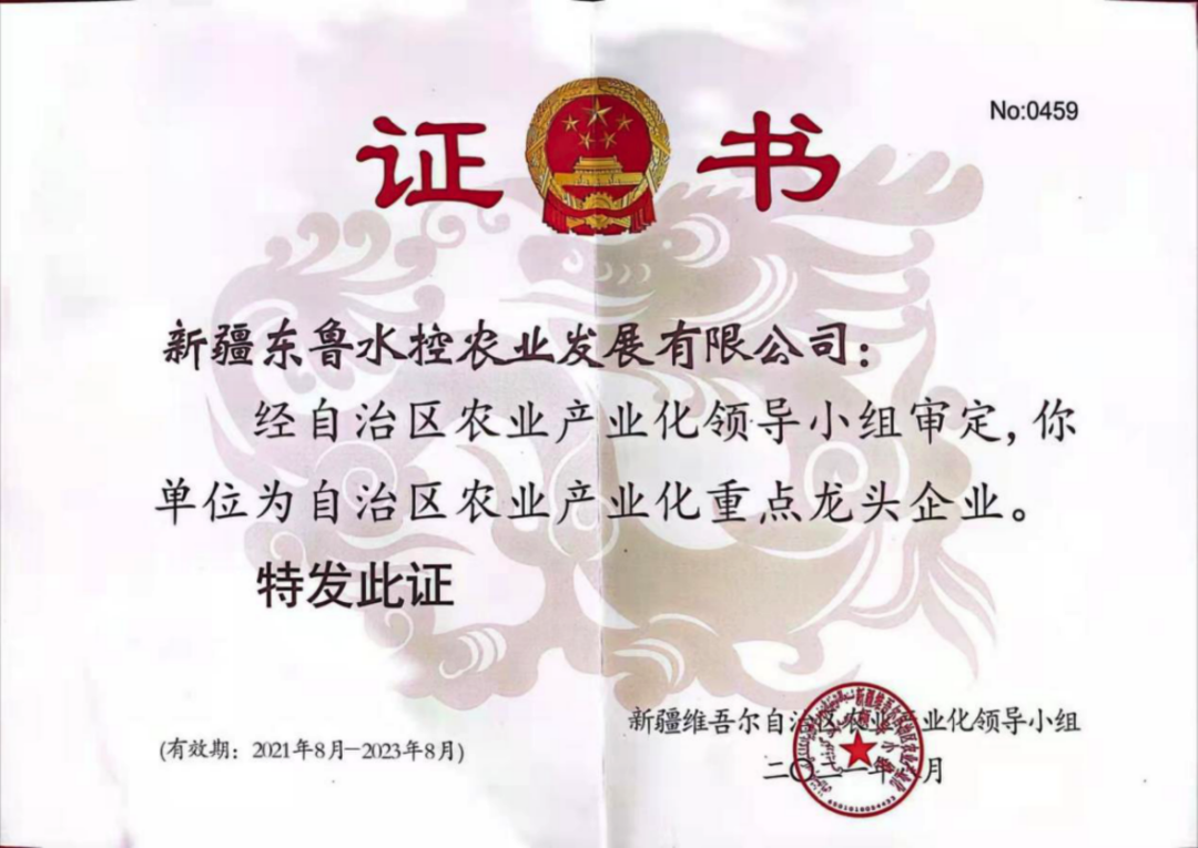 【農業產業化重點龍頭企業】新疆東魯水控農業發展有限公司