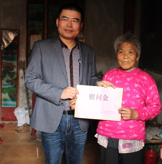 10月17日上午,濟寧市南水北調供水有限公司慰問組到專程到新閘村扶貧對象楊廣秀家中開展慰問活動。貧困戶楊廣秀是一位多70歲的普通農民,兒子長期失蹤,家中只有年幼的孫子,其本人因長期患病,僅依靠種地維持基本的溫飽問題,除了一些家禽外,沒有其他的經濟來源,家庭經濟條件十分困難。在慰問中,濟寧市南水北調供水有限公司總經理劉恩勝親切握住老人的手,送上了慰問金和日常生活補品并鼓勵老人要保重身體,樹立信心,積極生活,有困難及時向公司和政府反映。老人激動地說“我這一輩子經歷了太多,雖然想著不給政府添負擔,但政府沒有忘記我,給我送來了溫暖,我很感謝?!?/p>
